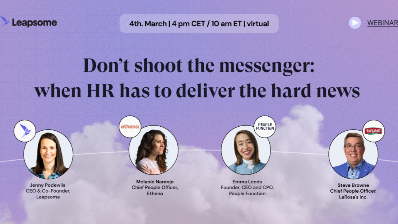 Featuring: Jenny Podewils — Co-CEO at Leapsome, Melanie Naranjo — CPO at Ethena, Steve Browne, SHRM-SCP — CPO at LaRosa's Pizzeria, Inc. and Emma Leeds, M.S. HR (She/Her) — Founder, CEO & Chief People Consultant at People Function